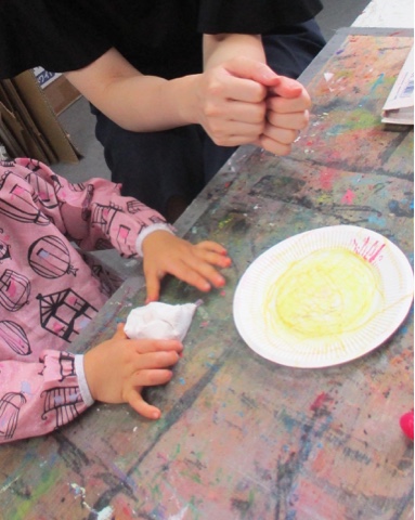 幼児クラス 「カラフル階段」「アルミホイルの魚」